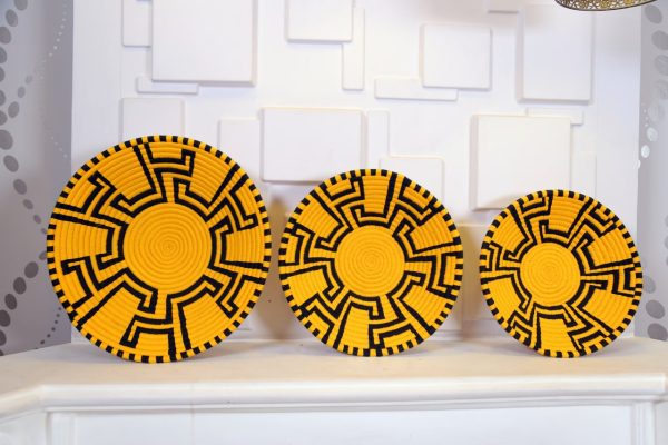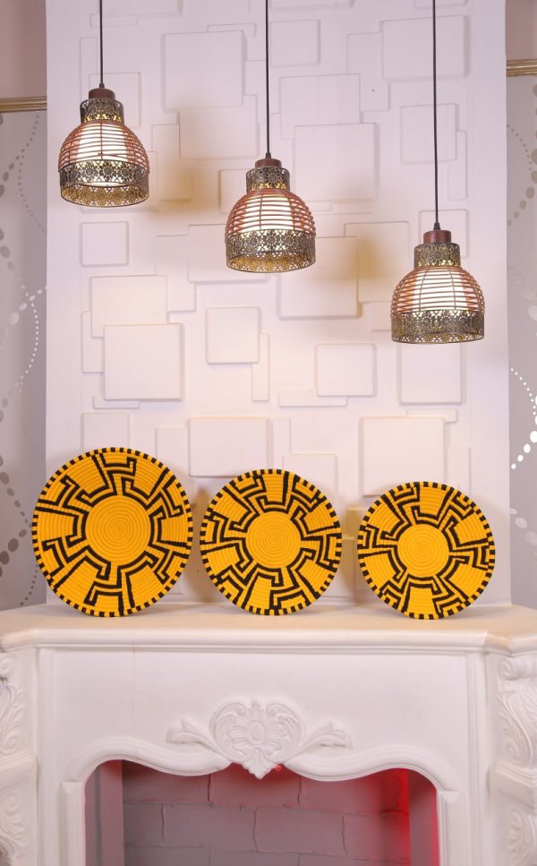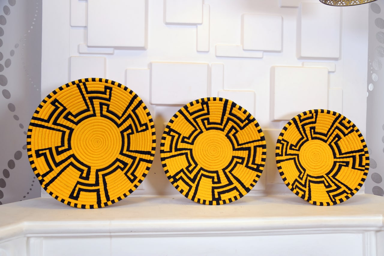 #modern and vibrant traditionally themed Ethiopian wall decorative baskets with matching vase and handmade pillow cases only from #TUBA BY Ararat